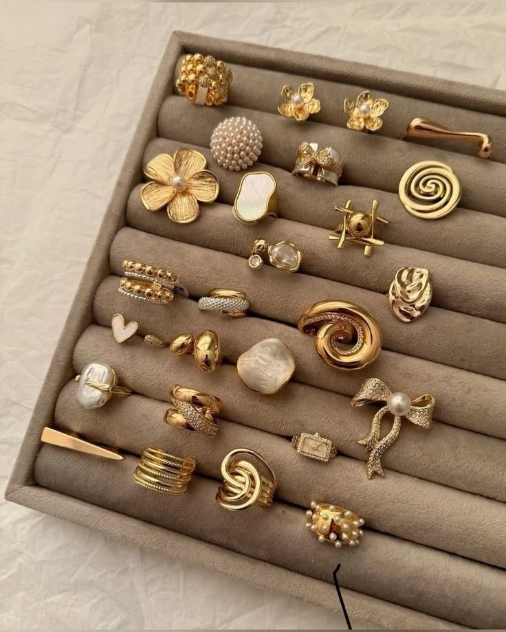Anillo Abierto Geométrico para Mujer — Acero Inoxidable Premium Chapado en Oro de Dieciséis Quilates con Perla y Ojo de Tigre, Estilo Moderno, Antideslustre y Resistente al Agua