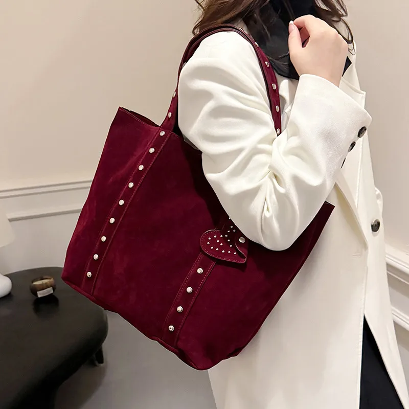 Pensado para la mujer moderna, este bolso tote destaca por su cierre con hebilla magnética que facilita el acceso seguro y rápido, y por sus dos asas cómodas que permiten llevarlo en la mano o al hombro con total comodidad. El forro de poliéster protege tus pertenencias y aporta durabilidad, mientras que el estilo cuidado y los remaches sutiles aportan un toque de distinción sin perder funcionalidad.
